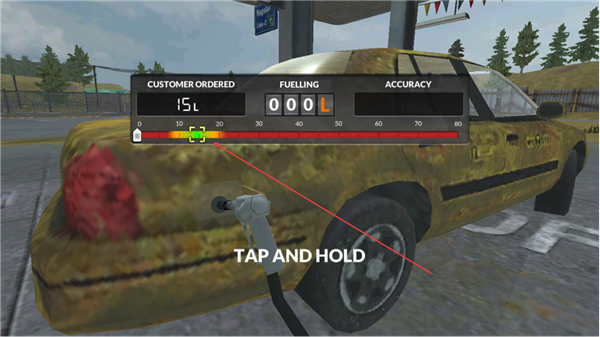 2、长按操作开始加油,按需求加注15L燃油,推进加油进程。