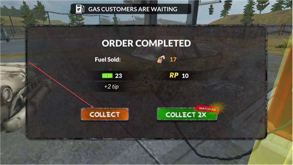 3、加油完成后,点击COLLECT领取收益23、小费2及10RP。