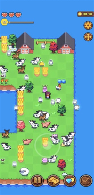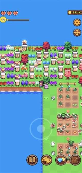 采用清新简单的像素画风构建海岛世界,场景、农作物、动物及建筑的刻画精致可爱,色彩搭配舒适和谐,营造出轻松惬意的视觉氛围,带来独特的怀旧感与沉浸感。