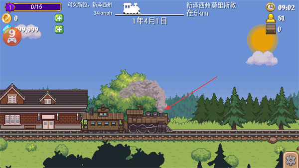 2、火车抵达莫里斯敦站,完成站点间的行程,解锁新的行驶路段,准备继续出发。