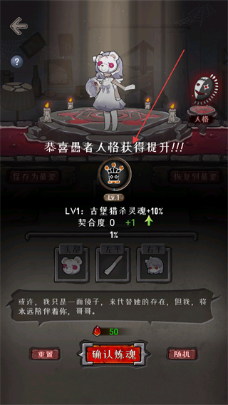 4、炼魂后愚人品格提升至LV1,解锁对应属性加成,完成本次炼魂流程。