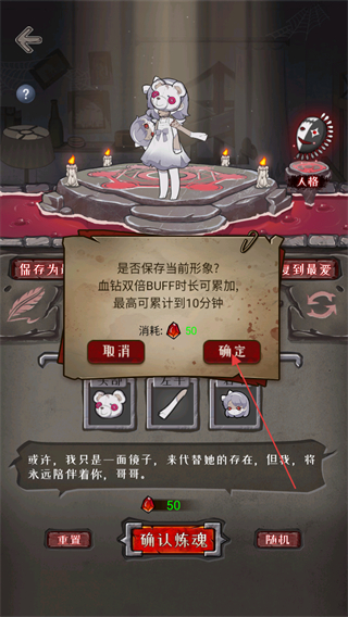 3、弹出是否保存当前形象提示,点击确定,保存形象并获得BUFF。