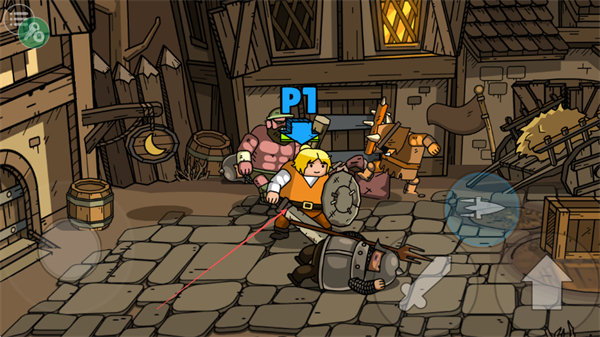 1、操控角色在城镇中与敌人战斗,利用武器和盾牌攻击、防御,击败敌人。