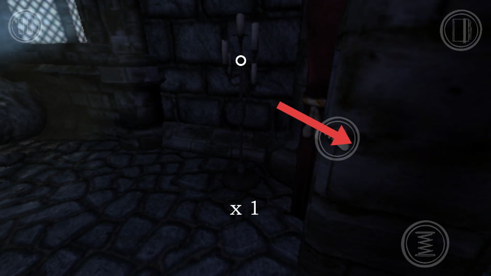 2、靠近室内的桌子等物品时,点击箭头指向的交互按键,可对桌上的蜡烛等物品进行互动,可能获取线索或道具。