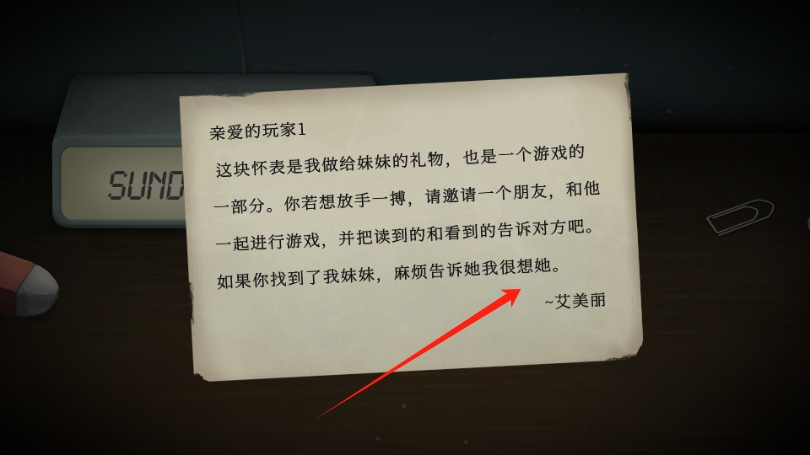 2、阅读信件内容,了解游戏背景是帮助艾美雨寻找妹妹,需与朋友分享读到的信息,通过推进剧情。