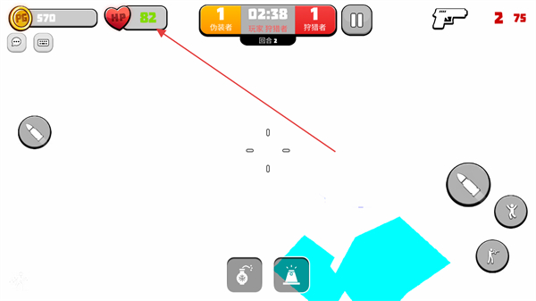 3、攻击后自身血量下降,继续在场景中寻找剩余伪装者。