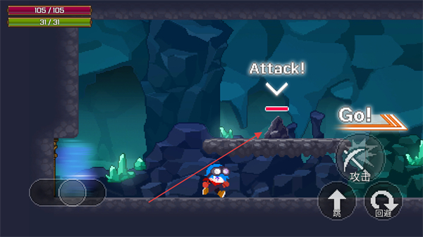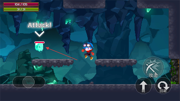4、跳跃至平台,瞄准绿色目标,点击攻击发起攻击,推进关卡。