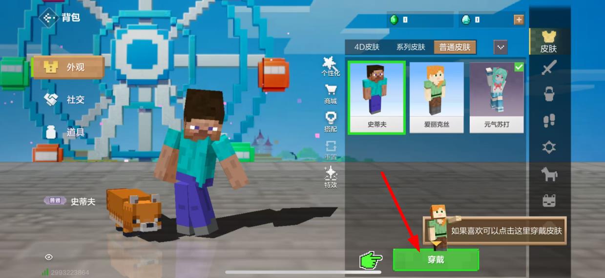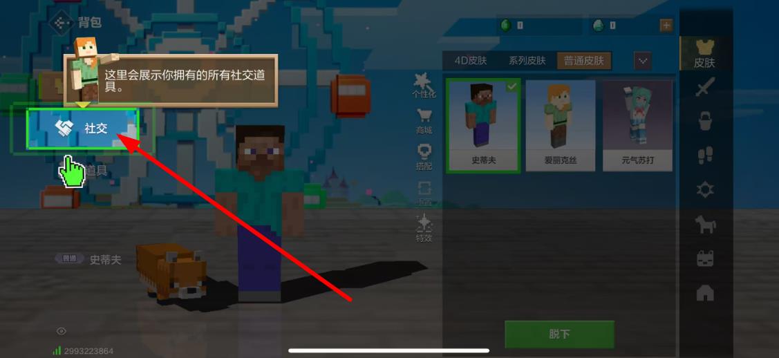 3、确定喜欢该皮肤后,点击皮肤预览下方的社交按钮,即可成功更换角色皮肤;若后续想更换回其他皮肤,重复上述步骤选择对应皮肤穿戴就行。