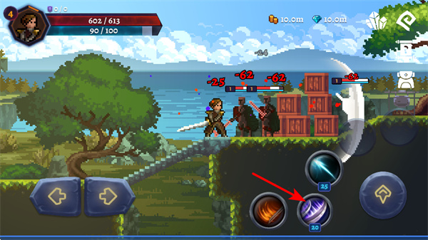 3、面对强力敌人时,点击橙色技能按钮,这是释放高伤害技能的关键步骤,能有效削减敌人血量,提升战斗效率。