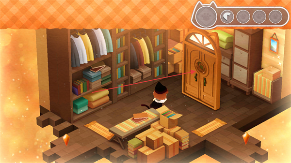 1、操控猫咪在房间内探索,靠近门的区域推进场景交互。
