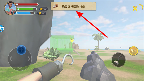 3、在任务区域,查看上方任务提示,明确需要完成的收集目标,如拾取椰子。