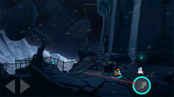 1、通过左侧方向键操控角色移动,向场景中的装置区域前进,推进关卡流程。