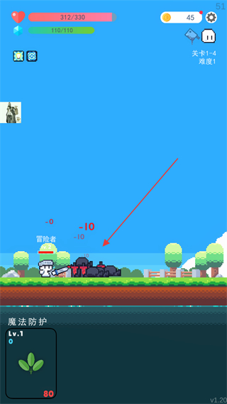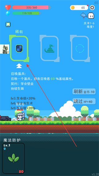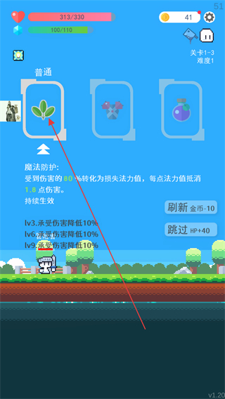 2、带着魔法防护效果进入关卡4,抵御敌人伤害,稳定战斗状态。