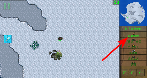 4、市民建造完成后,在单位列表中选择采集资源任务,让市民执行采集资源的操作,保障资源供应,支撑后续的单位建造。
