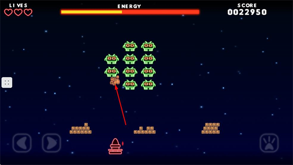3、通过左右移动按钮,控制飞船左右移动,躲避敌人攻击并调整射击位置。