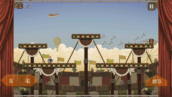 4、右下角跳跃按钮控制角色腾空,需配合平台位置调整移动与跳跃的时机,同时躲避场景中的陷阱。