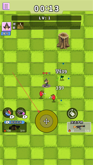 2、操控角色在绿色格子地图中移动,用突击步枪攻击怪物,注意躲避怪物攻击。