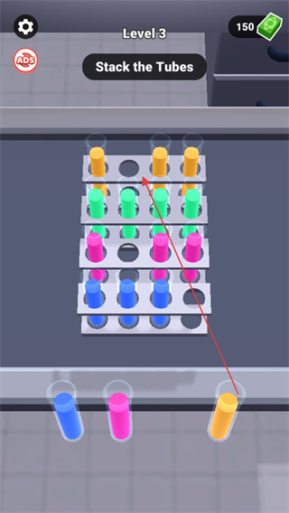 1、在Level3中,根据StacktheTubes提示,整理试管。