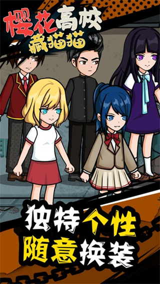 以樱花高校为核心场景,将教学楼等熟悉的校园地点,与昏暗光影、突然出现的鬼怪身影相结合,营造出清新与惊悚交织的独特氛围,每一次躲藏都充满未知的紧张感。