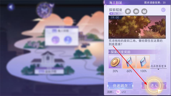 2、选择目标场景,点击进入按钮,进入该场景的调查准备页。