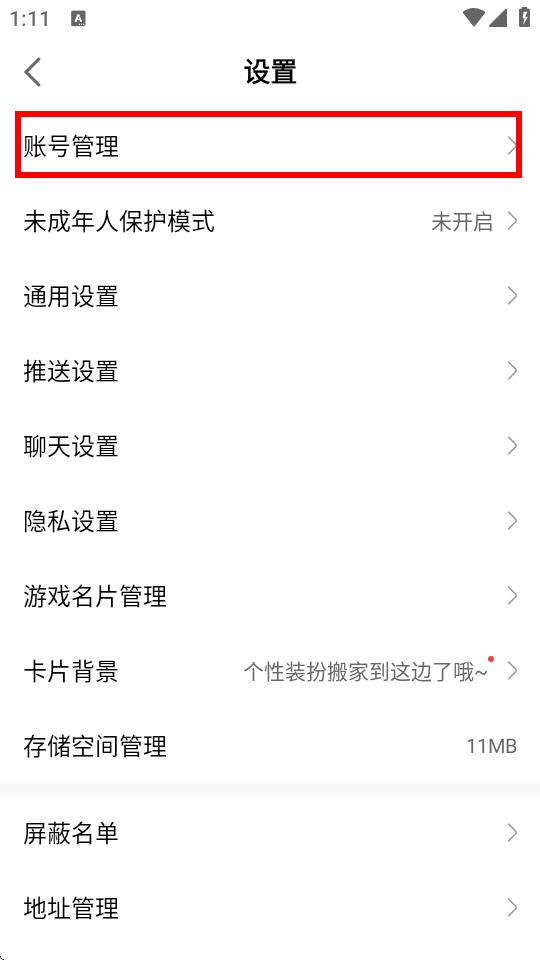 3、在设置界面里,找到并点击账号管理选项。