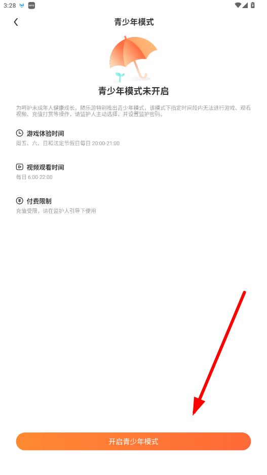 4、进入青少年模式页面后,点击开启青少年模式按钮,按照提示完成设置。