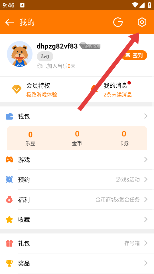1、进入当乐我的页面,需要点击右上角设置的图标,进入设置界面。