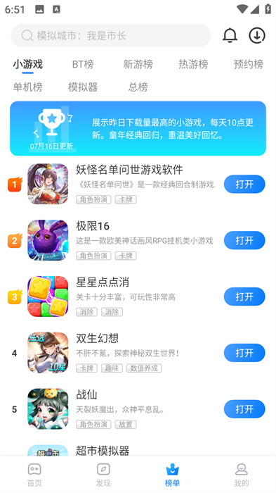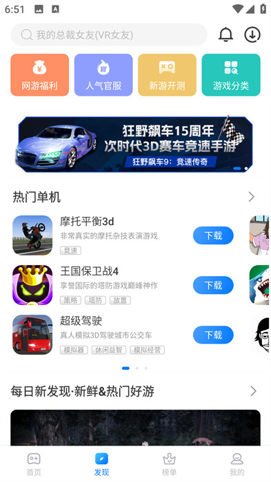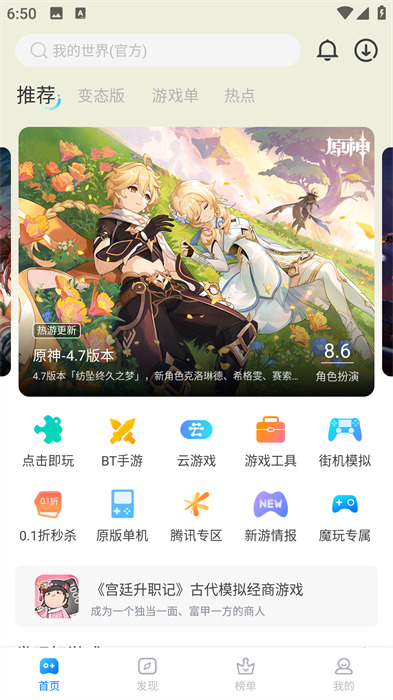 4、点击下方【发现】,能看到具体的游戏分类,帮助首次下载软件的小伙伴能了解到新的游戏题材;