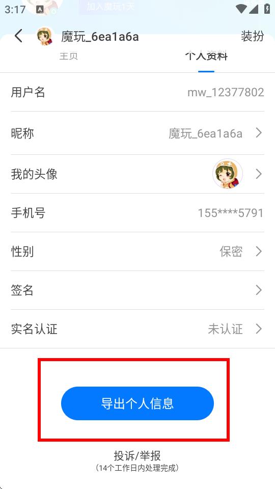 3、在个人资料页面,找到并点击导出个人信息按钮,按照提示操作即可导出个人信息。