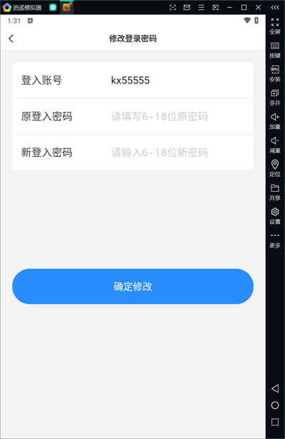 4、点击后进入修改登录密码界面,在这里输入原登入密码,再输入新登入密码,最后点击【确认修改】即可。