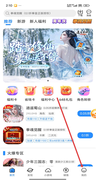 1、首先打开277游戏盒,进入软件后点击界面右下方【我的】;