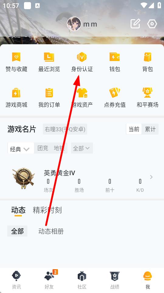 2、在个人界面中找到并点击身份认证选项。