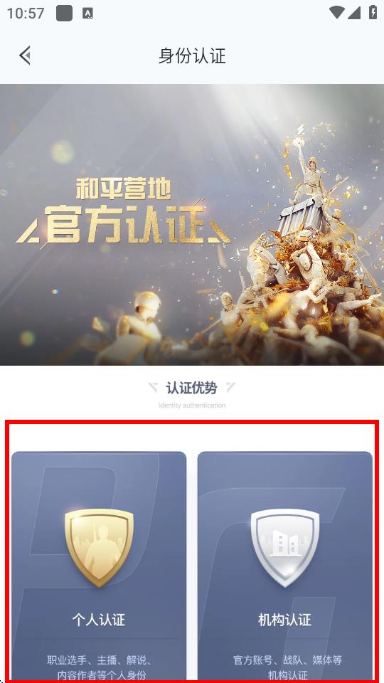 3、进入身份认证页面后,选择要进行的认证类型,如个人认证或机构认证。