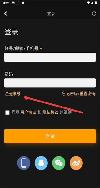 3、在进入到登录页面后,若没有账号可以点击注册账号按钮,进行注册。