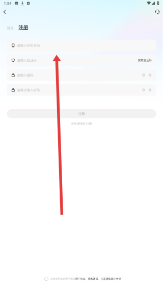 3、在注册界面中,首先点击请输入手机号码输入框,填写本人常用手机号码,作为注册账号的基础信息。