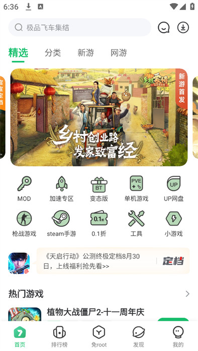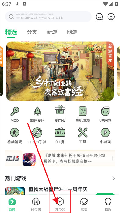 1、首先,你可以将软件下载到手机桌面上,并点击进入到平台,点击中间的【免root】,如下图所示;