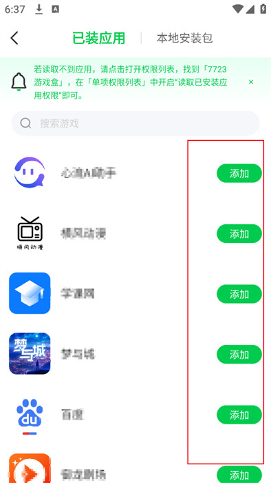 2、随后,点击中间的绿色按钮【添加游戏】,会自动跳转页面;