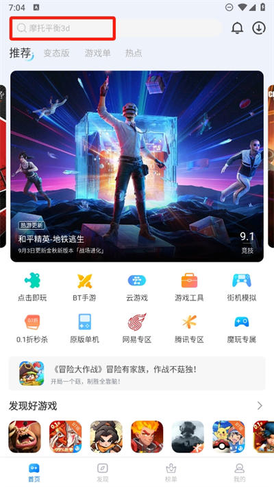 1、直接下载安装好该软件后,直接进入可以在发现这栏中找到各种类型的游戏资源;