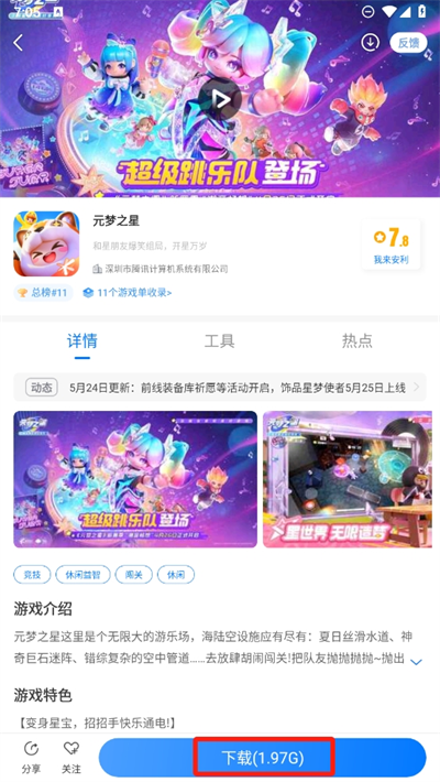 5、我们以元梦之星为例,直接点击进入还能看到官方新出的活动,你们直接点击下载就能下载了。