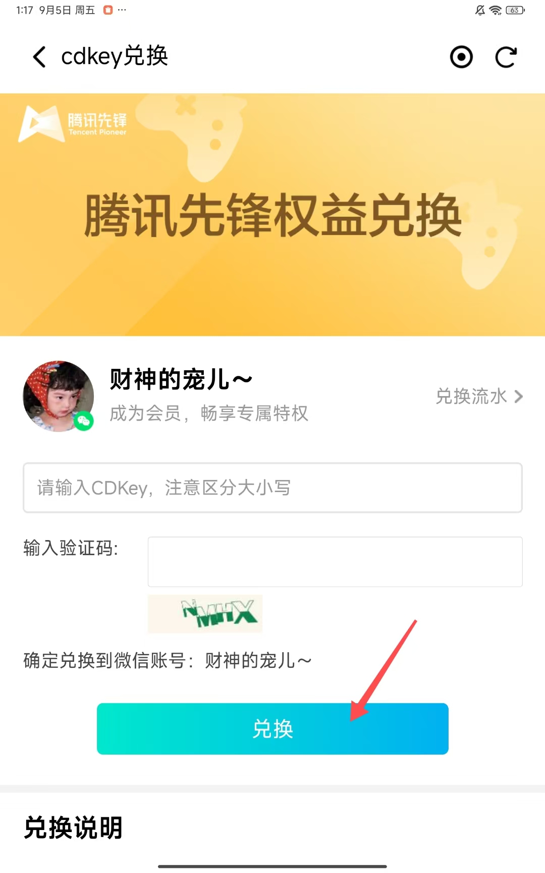 4、确认输入信息无误后,点击兑换按钮,即可完成cdkey兑换会员操作。