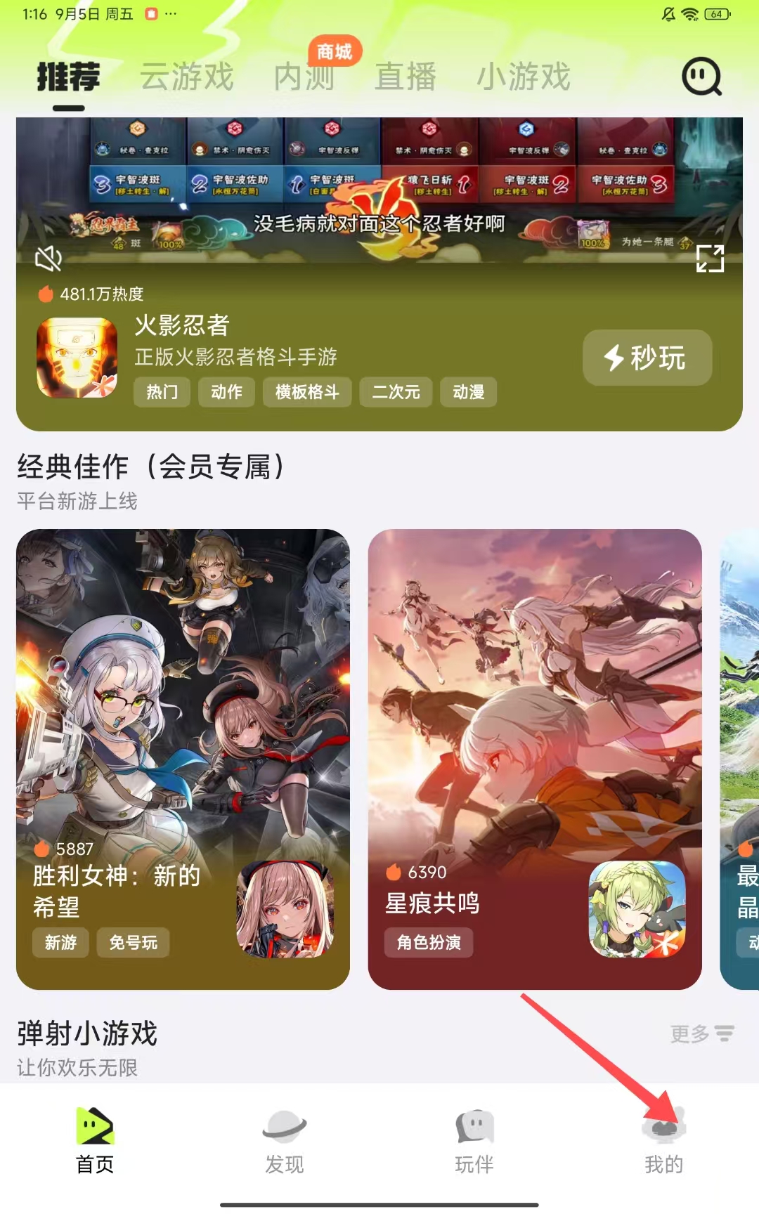 1、打开腾讯先游APP,点击底部导航栏中的我的。
