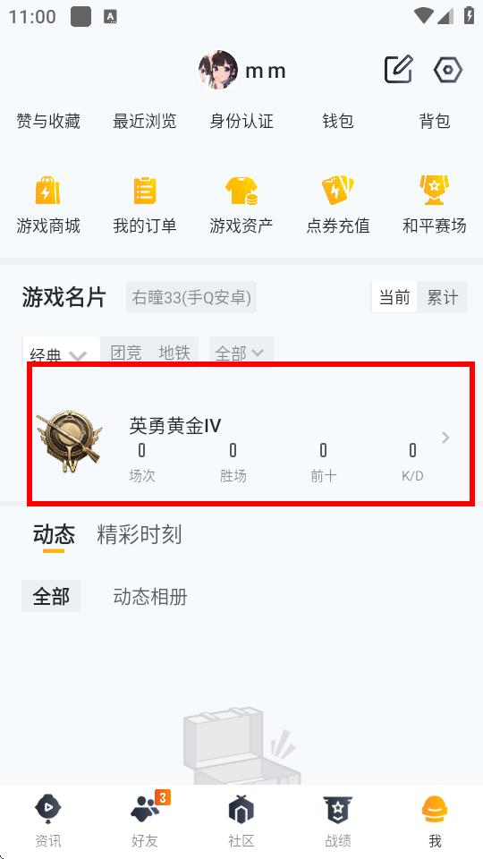 3、进入页面后,在下方可以看到最近战绩板块,即可查看最近的游戏战绩。