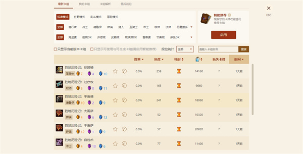 炉石盒子app卡组库与pc版互通,为玩家提供准确的卡组对阵九职业胜率、热度、造价等数据信息进行参考,同时过万套卡组满足不同游戏阶段玩家所有需求。