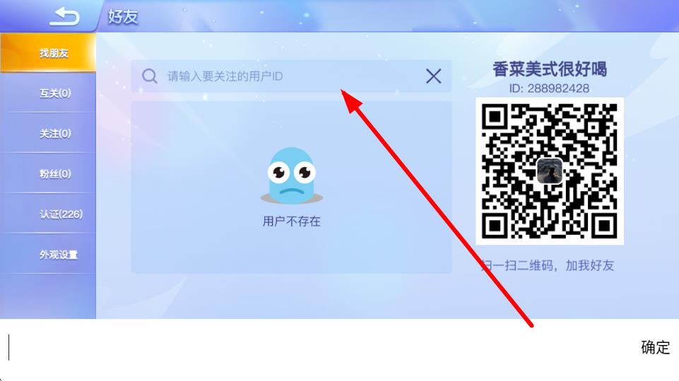 3、若知道对方的用户ID,在请输入要关注的用户ID搜索框中,输入对方准确的用户ID,点击添加好友申请,等待对方同意,即可成功添加好友。