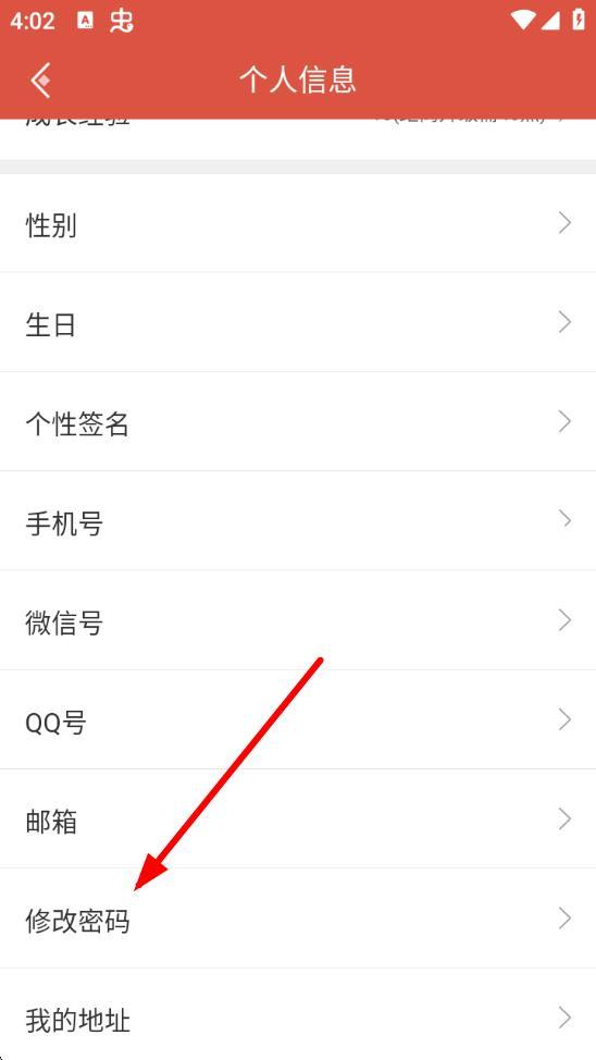 2、在个人信息页面,向下滑动找到修改密码选项,点击进入修改密码界面。