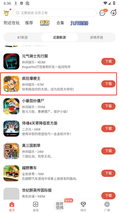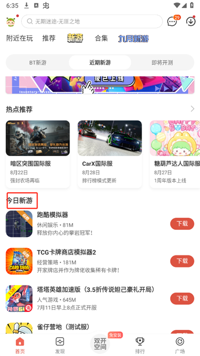 3、进入到新游栏目之后,玩家可以向下滑动来看看有没有自己想要玩的新游戏;