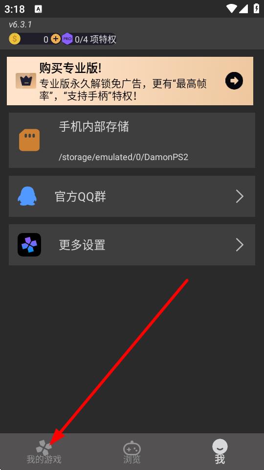 1、打开呆萌PS2模拟器,点击底部导航栏中的我的游戏进入主界面。