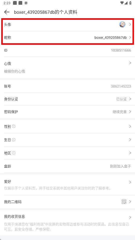 3、在个人资料界面,点击头像可修改头像图片,点击昵称可修改昵称。