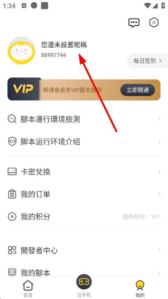 2、在个人页面中,点击头像旁边的您還未設置呢稱区域,进入个人信息界面。