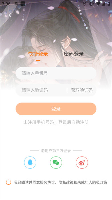 1、将软件点击进入到其中,并在线登录自己的账号,没有账号的用户可通过验证码登录;